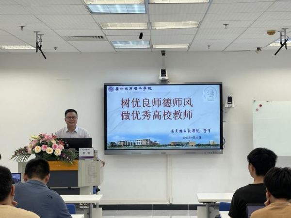 马克思主义学院党总支书记李军以“树优良师德师风,做优秀高校教师”为题,重点讲述了中国传统文化中蕴含的革命传统和教育者的高尚品德。并强调课程思政建设的重要性,鼓励老师们将爱国主义融入课程教学,培养学生的国家荣誉感和社会责任感。