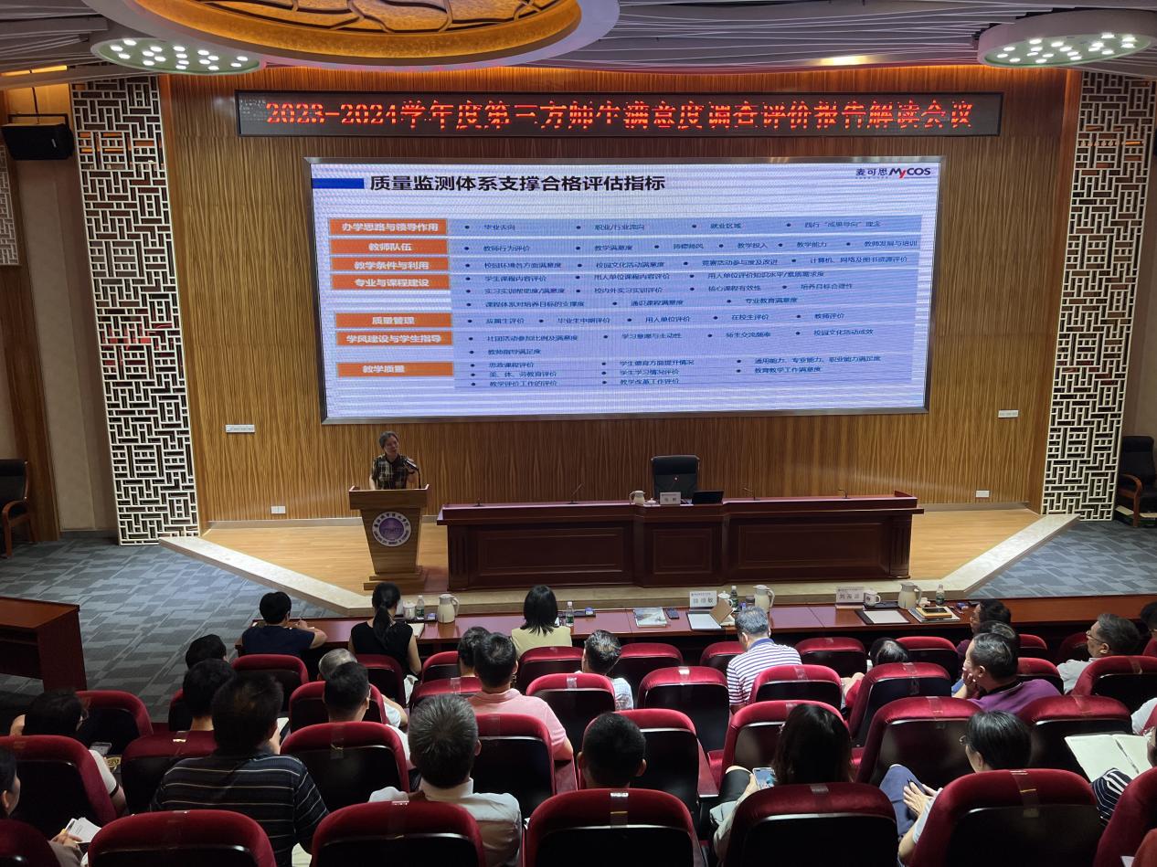 麦可思研究院马妍副院长对我校《2023-2024学年学生学习体验与成长评价报告》及《2024年教师教学与发展评价报告》进行了全面深入的解读。她结合本科教学工作合格评估的文件要求,从多维度、多层面分析了学生的学习成效与学风建设等的现状与挑战,教师在师德师风、教学投入与能力达成等方面的表现。报告中,通过详实的数据和生动的案例展现了我校在人才培养方面的亮点与成就,直面问题,指出了存在的不足与改进空间。