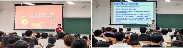 学生教学信息员培训会议则聚焦发挥学生主体作用,畅通教学反馈渠道。王全迪首先解读《广州城市理工学院学生教学信息员工作规定》,明确该制度是引导学生有序参入学校教学管理、助力教学质量提升的重要途径,界定信息员核心职责与工作流程,围绕收集教学情况,反馈学习问题,传递学生诉求建议等开展工作,同时对信息员的工作态度、责任意识、工作量与考核提出要求,确保信息反馈及时客观,衔接学生需求与教学改进。会上,99名2024-2025学年“优秀学生教学信息员”获表彰,彰显学校对学生参入教学管理的重视与肯定。郭艾教授以《基于标准和证据的课堂观察与评价——学生教学信息员》进行主题专项培训,强调信息反馈是为学校提供真实教学数据,支撑教学改进决策的关键,要求信息员严守“客观性、公正性、发展性、透明性”原则。现场,学生信息员助理点评开学三周信息反馈情况,梳理问题并给出建议。会议最后还设互动环节,质管处工作人员与信息员现场沟通,解决工作困惑。